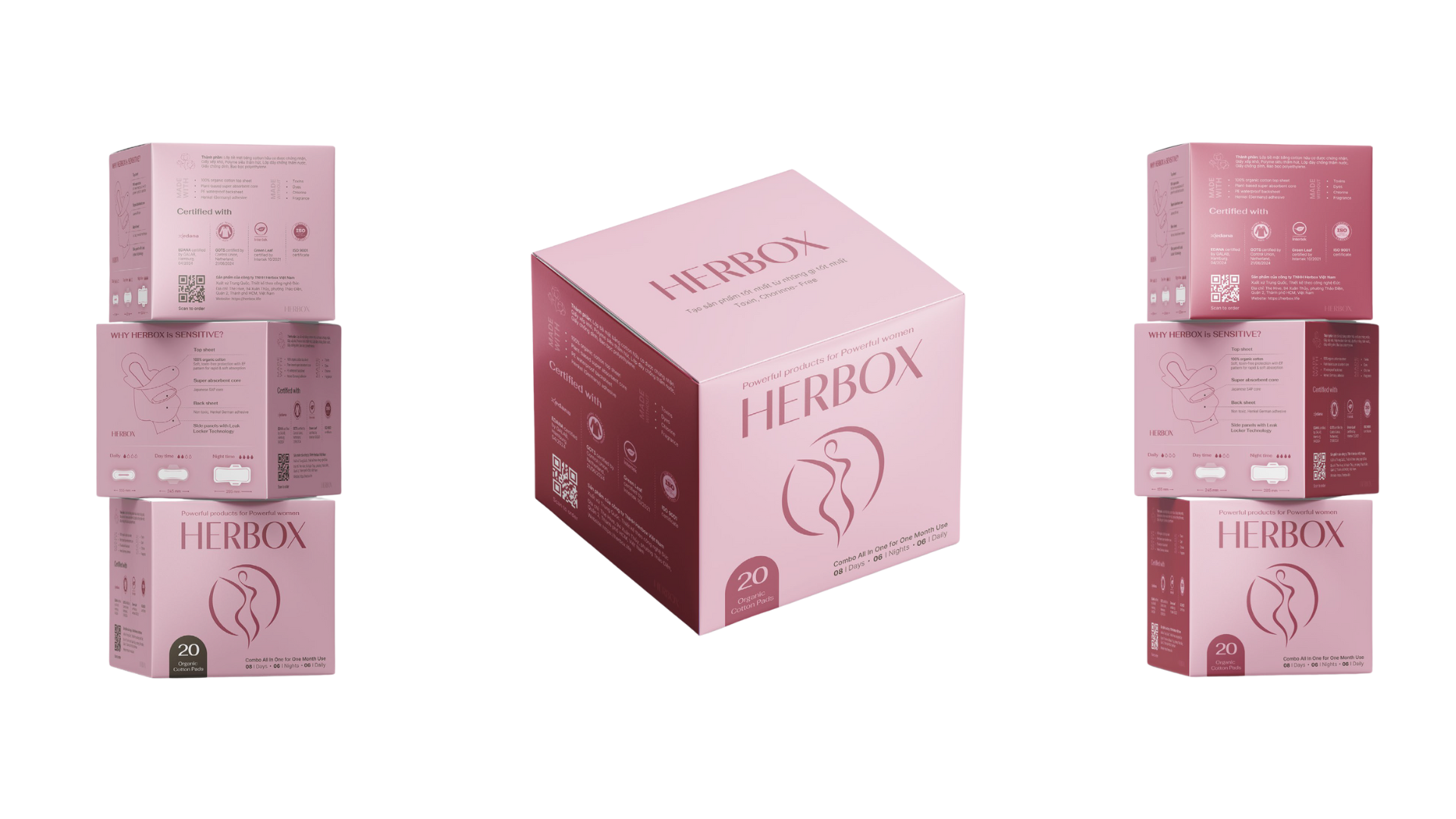 Với chứng chỉ nghiêm ngặt nhất GOTS, EDANA và với hệ thống quản lý chất lượng nghiêm ngặt được giám sát trực tuyến, Herbox xây dựng sự vượt trội và khác biệt của một sản phẩm đơn giản và giàu cảm xúc với người phụ nữ, trao cho họ cơ hội được thể hiện vẻ thanh lịch tuyệt vời.